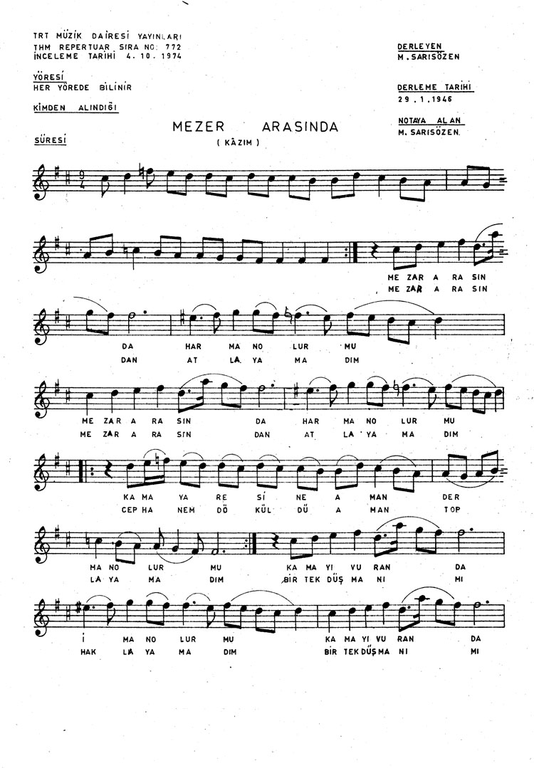 Bu türkünün notasında, sözlerinde veya örnek icrasında bir eksiklik yahut yanlışlık tespit ederseniz, e-mail ile veya WhatsApp hattından bildirim yaparak katkıda bulunabilirsiniz.