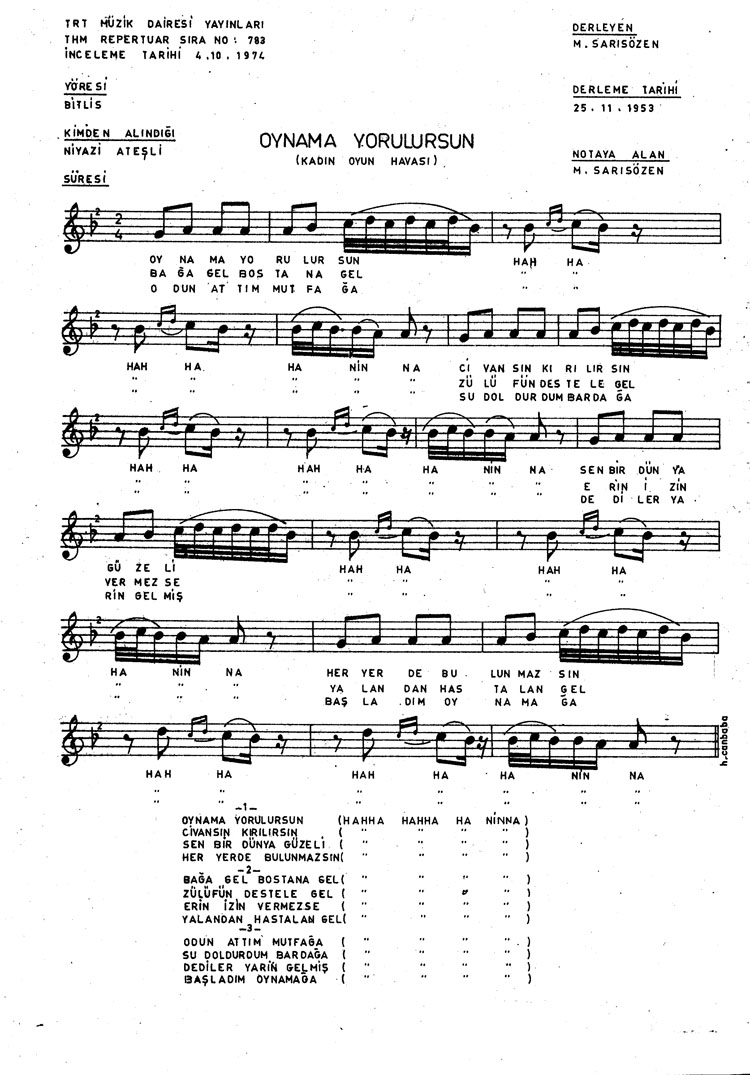 Bu türkünün notasında, sözlerinde veya örnek icrasında bir eksiklik yahut yanlışlık tespit ederseniz, e-mail ile veya WhatsApp hattından bildirim yaparak katkıda bulunabilirsiniz.