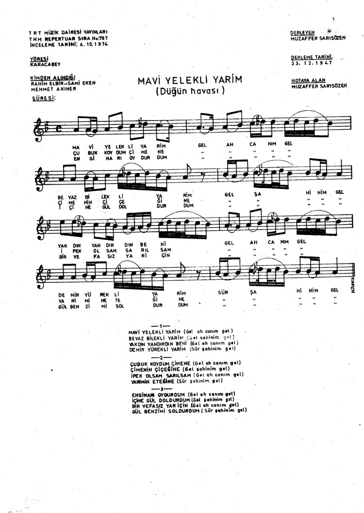 Bu türkünün notasında, sözlerinde veya örnek icrasında bir eksiklik yahut yanlışlık tespit ederseniz, e-mail ile veya WhatsApp hattından bildirim yaparak katkıda bulunabilirsiniz.