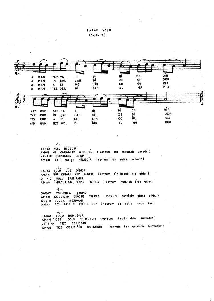 Bu türkünün notasında, sözlerinde veya örnek icrasında bir eksiklik yahut yanlışlık tespit ederseniz, e-mail ile veya WhatsApp hattından bildirim yaparak katkıda bulunabilirsiniz.