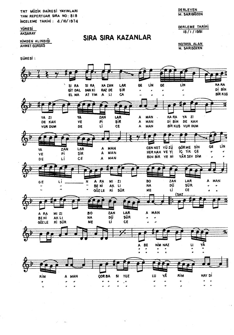 Bu türkünün notasında, sözlerinde veya örnek icrasında bir eksiklik yahut yanlışlık tespit ederseniz, e-mail ile veya WhatsApp hattından bildirim yaparak katkıda bulunabilirsiniz.