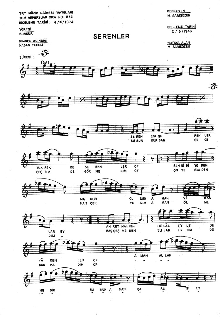 Bu türkünün notasında, sözlerinde veya örnek icrasında bir eksiklik yahut yanlışlık tespit ederseniz, e-mail ile veya WhatsApp hattından bildirim yaparak katkıda bulunabilirsiniz.