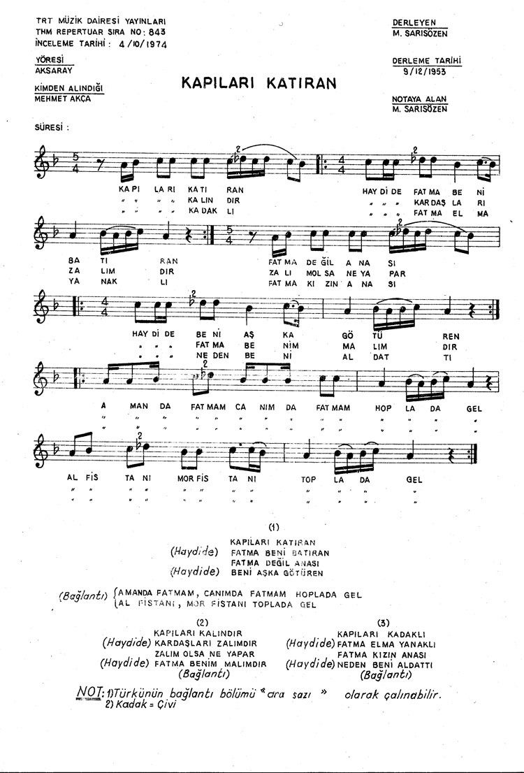 Bu türkünün notasında, sözlerinde veya örnek icrasında bir eksiklik yahut yanlışlık tespit ederseniz, e-mail ile veya WhatsApp hattından bildirim yaparak katkıda bulunabilirsiniz.