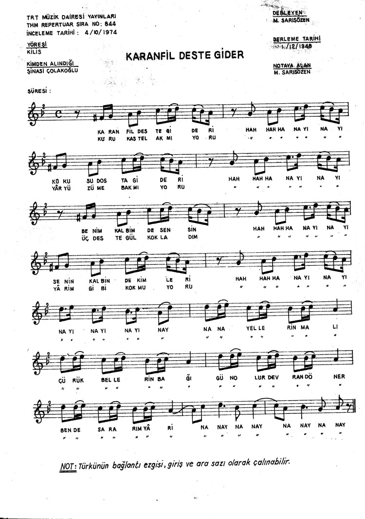 Bu türkünün notasında, sözlerinde veya örnek icrasında bir eksiklik yahut yanlışlık tespit ederseniz, e-mail ile veya WhatsApp hattından bildirim yaparak katkıda bulunabilirsiniz.