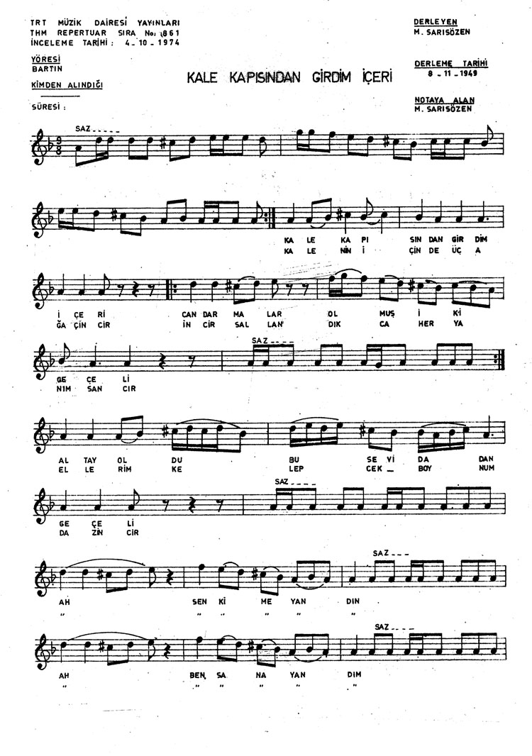 Kale kapısından girdim içeri (Rep.No: 861)