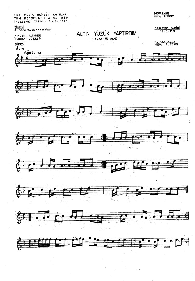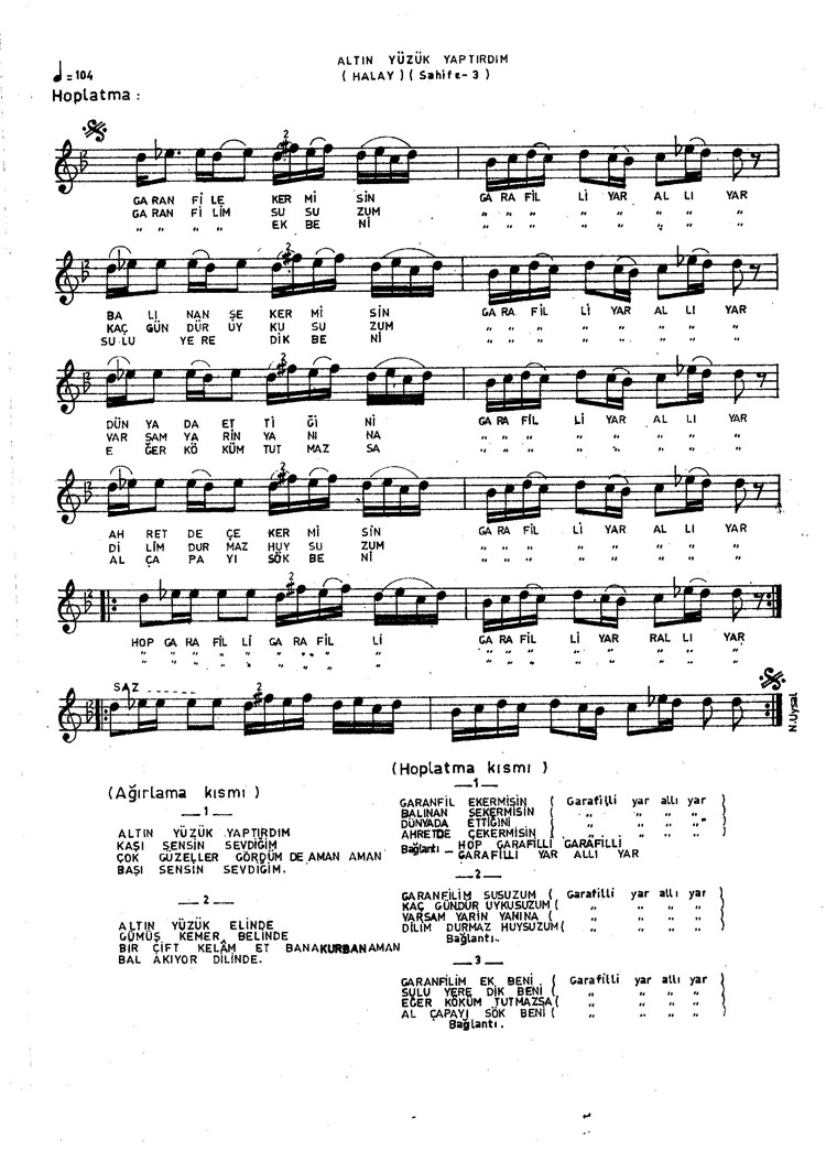 Bu türkünün notasında, sözlerinde veya örnek icrasında bir eksiklik yahut yanlışlık tespit ederseniz, e-mail ile veya WhatsApp hattından bildirim yaparak katkıda bulunabilirsiniz.