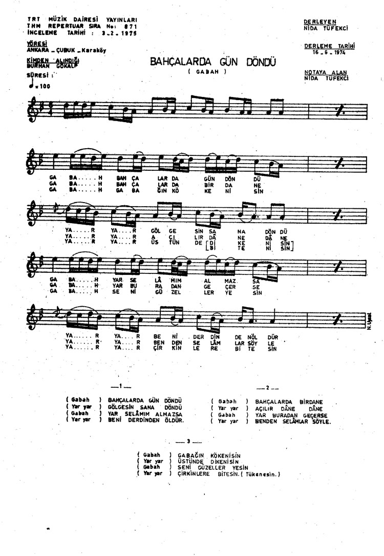 Bahçalarda gün döndü (Gabah) (Rep.No: 871)
