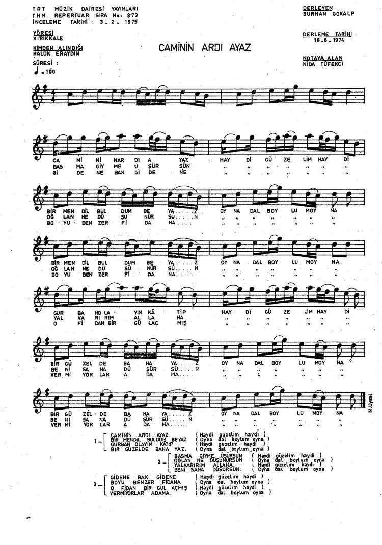 Bu türkünün notasında, sözlerinde veya örnek icrasında bir eksiklik yahut yanlışlık tespit ederseniz, e-mail ile veya WhatsApp hattından bildirim yaparak katkıda bulunabilirsiniz.