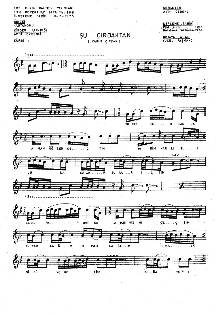 Şu çırdaktan öğlen geçtim (Rep.No: 888)