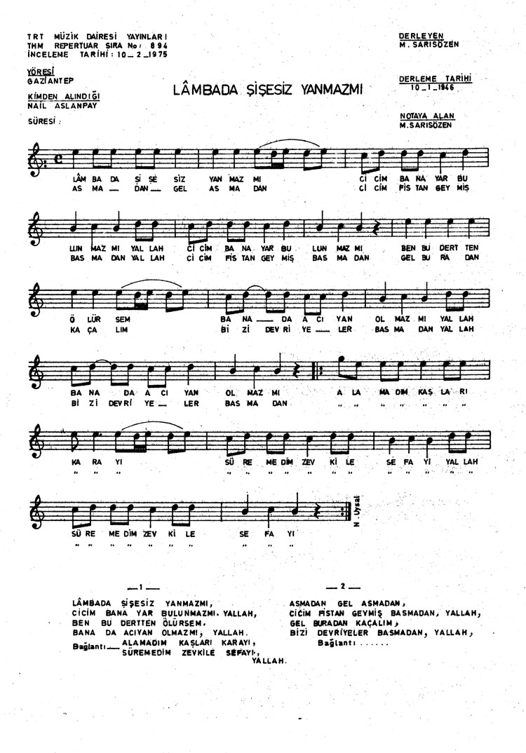 Bu türkünün notasında, sözlerinde veya örnek icrasında bir eksiklik yahut yanlışlık tespit ederseniz, e-mail ile veya WhatsApp hattından bildirim yaparak katkıda bulunabilirsiniz.