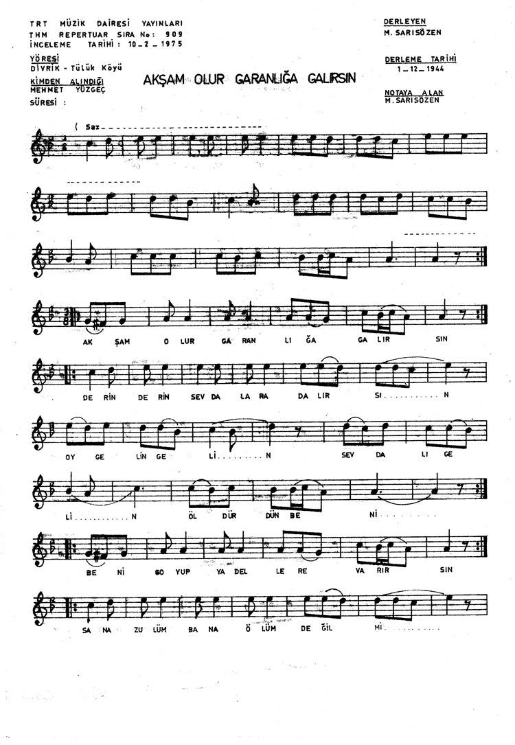 Bu türkünün notasında, sözlerinde veya örnek icrasında bir eksiklik yahut yanlışlık tespit ederseniz, e-mail ile veya WhatsApp hattından bildirim yaparak katkıda bulunabilirsiniz.