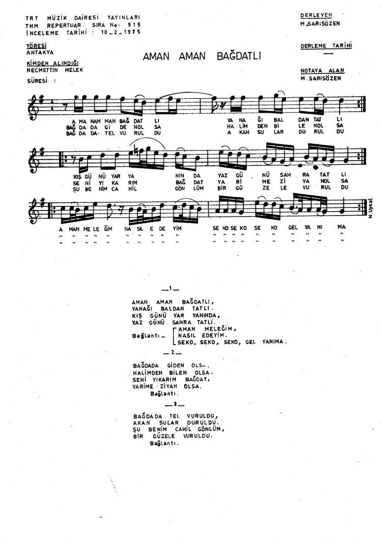 Aman aman Bağdatlı (Rep.No: 915)