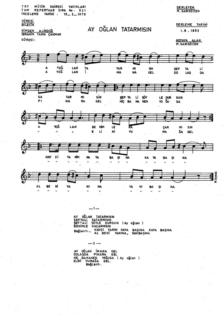 Ay oğlan tatar mısın (Rep.No: 921)
