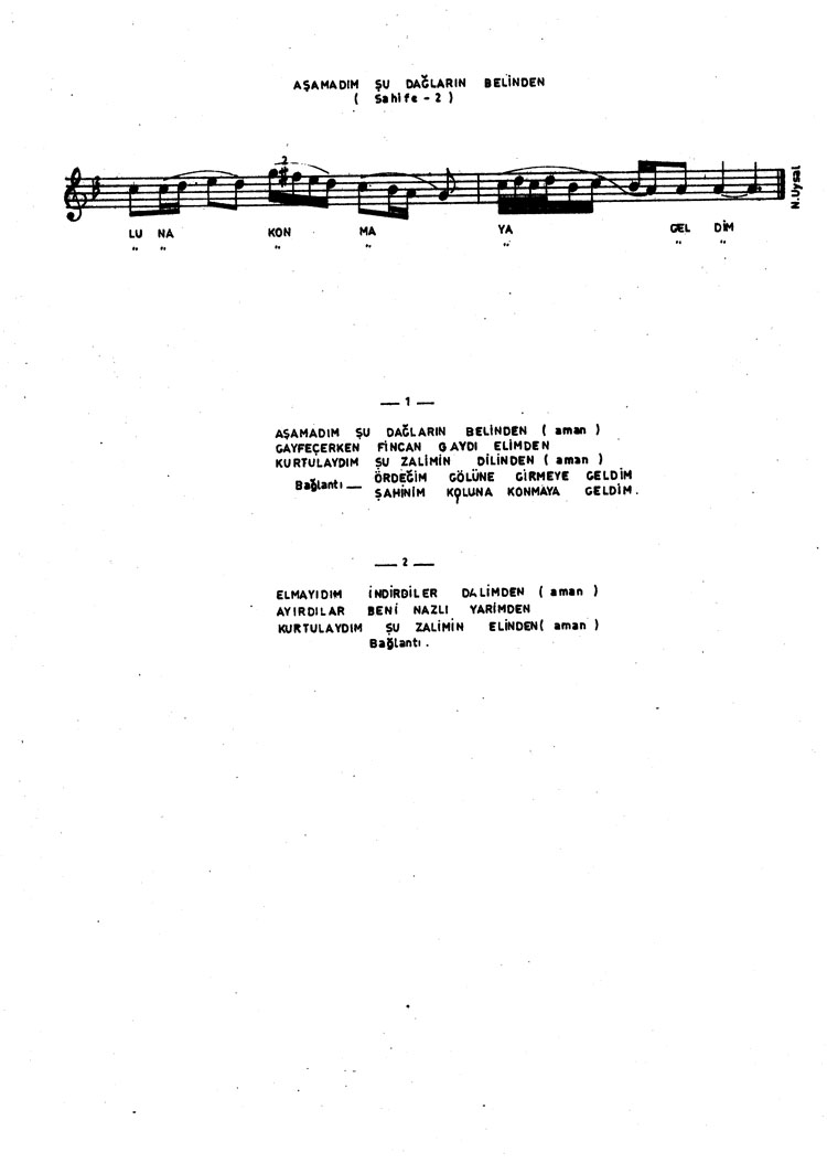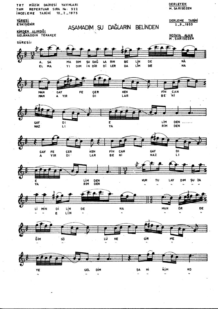 Aşamadım şu dağların belinden (Rep.No: 922)