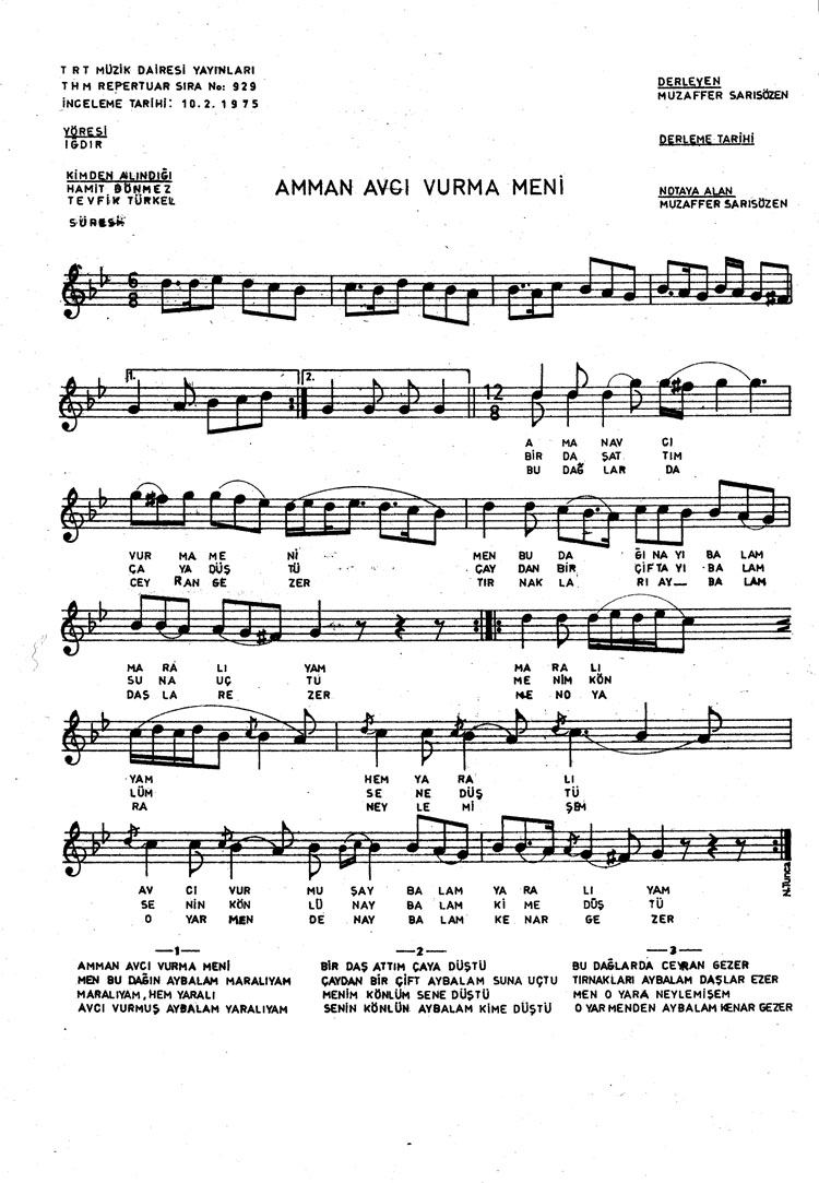 Amman avcı vurma beni (Rep.No: 929)