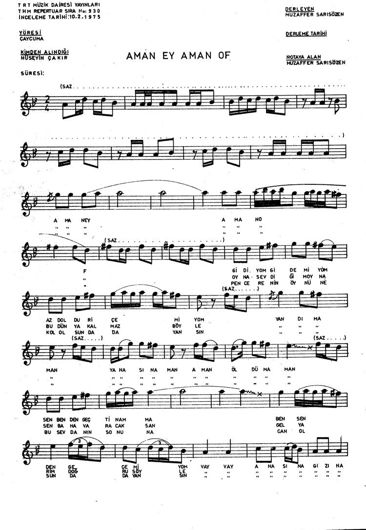 Bu türkünün notasında, sözlerinde veya örnek icrasında bir eksiklik yahut yanlışlık tespit ederseniz, e-mail ile veya WhatsApp hattından bildirim yaparak katkıda bulunabilirsiniz.