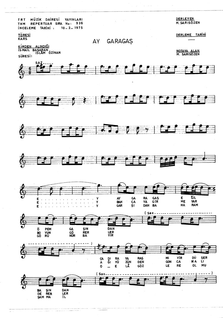 Ay gara gaş eğil öpem gaşından (Rep.No: 936)