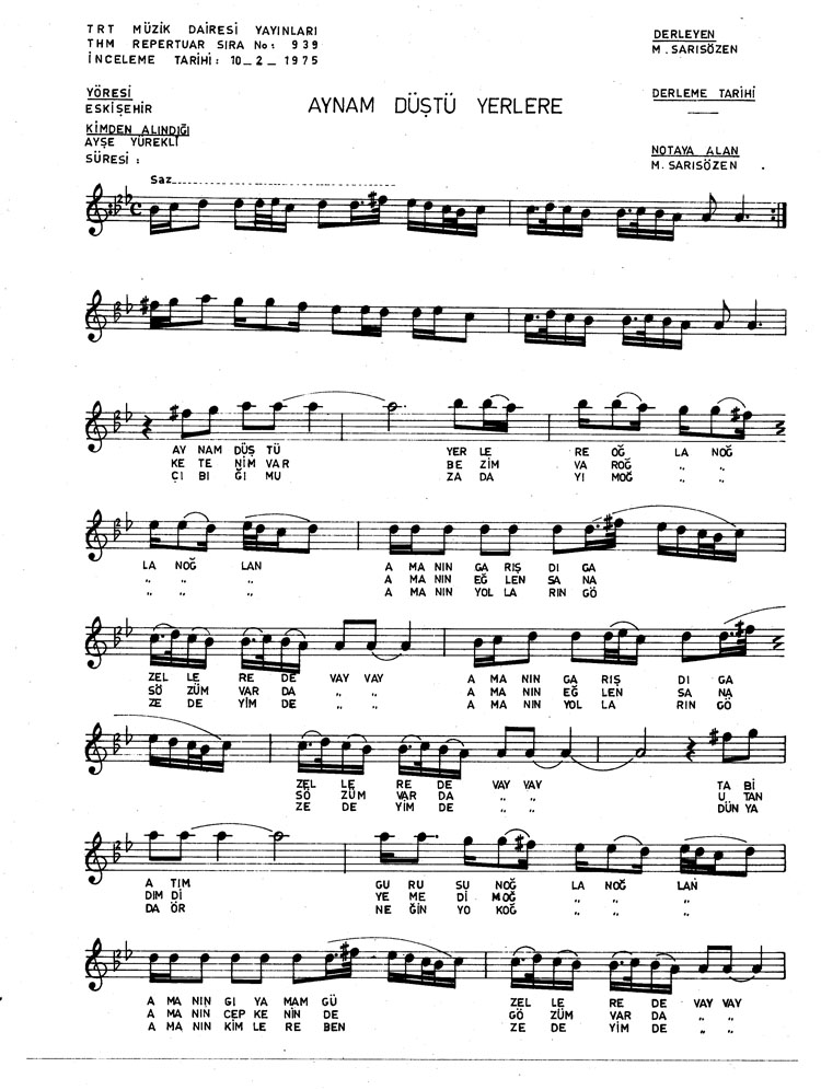 Aynam düştü yerlere (Rep.No: 939)