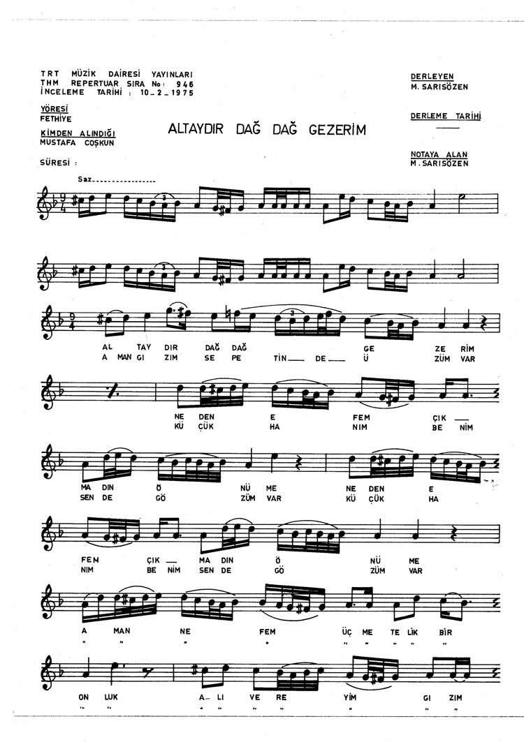 Alt´aydır dağ dağ gezerim (Rep.No: 946)