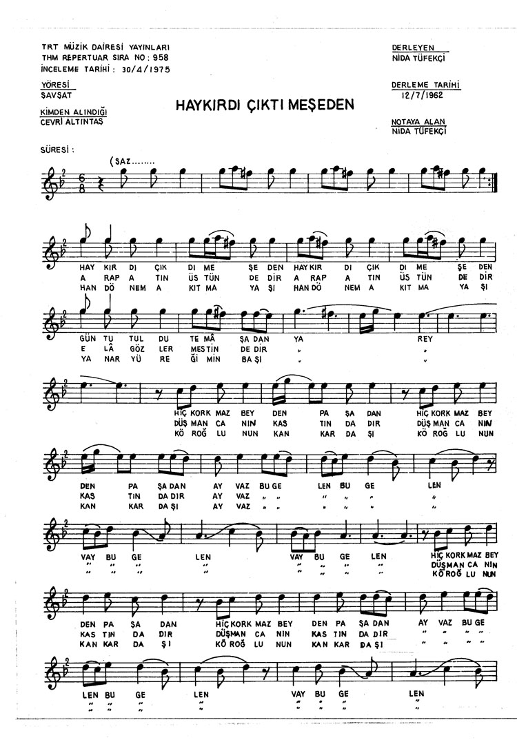 Haykırdı çıktı meşeden (Rep.No: 958)