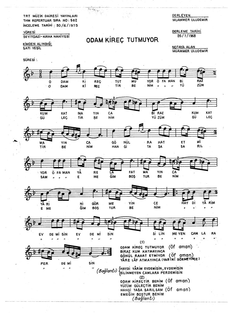 Bu türkünün notasında, sözlerinde veya örnek icrasında bir eksiklik yahut yanlışlık tespit ederseniz, e-mail ile veya WhatsApp hattından bildirim yaparak katkıda bulunabilirsiniz.