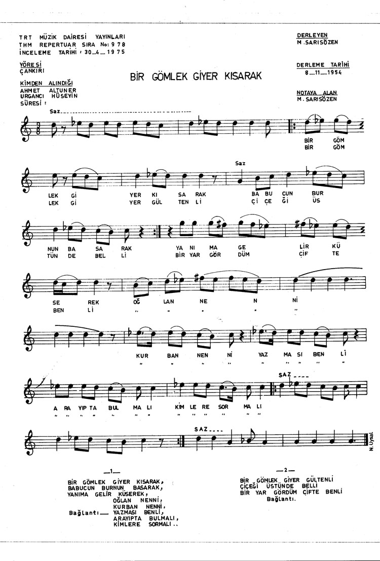 Bu türkünün notasında, sözlerinde veya örnek icrasında bir eksiklik yahut yanlışlık tespit ederseniz, e-mail ile veya WhatsApp hattından bildirim yaparak katkıda bulunabilirsiniz.