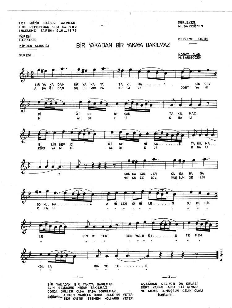 Bu türkünün notasında, sözlerinde veya örnek icrasında bir eksiklik yahut yanlışlık tespit ederseniz, e-mail ile veya WhatsApp hattından bildirim yaparak katkıda bulunabilirsiniz.