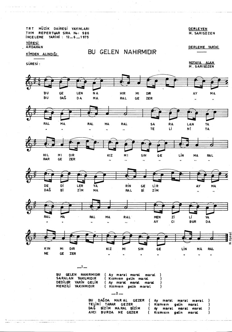 Bu türkünün notasında, sözlerinde veya örnek icrasında bir eksiklik yahut yanlışlık tespit ederseniz, e-mail ile veya WhatsApp hattından bildirim yaparak katkıda bulunabilirsiniz.