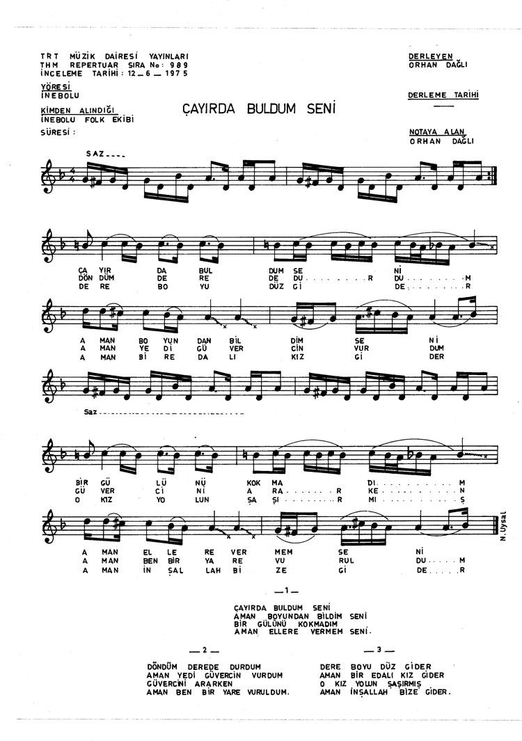 Bu türkünün notasında, sözlerinde veya örnek icrasında bir eksiklik yahut yanlışlık tespit ederseniz, e-mail ile veya WhatsApp hattından bildirim yaparak katkıda bulunabilirsiniz.