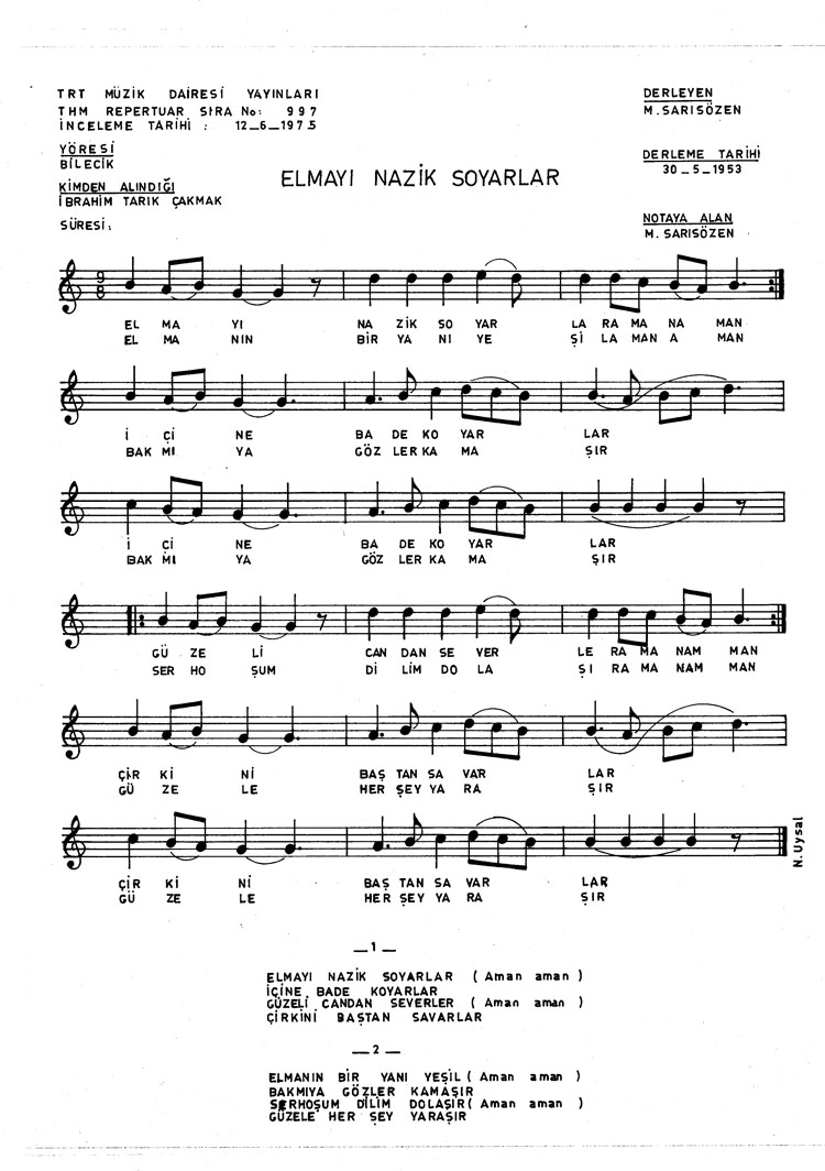 Bu türkünün notasında, sözlerinde veya örnek icrasında bir eksiklik yahut yanlışlık tespit ederseniz, e-mail ile veya WhatsApp hattından bildirim yaparak katkıda bulunabilirsiniz.