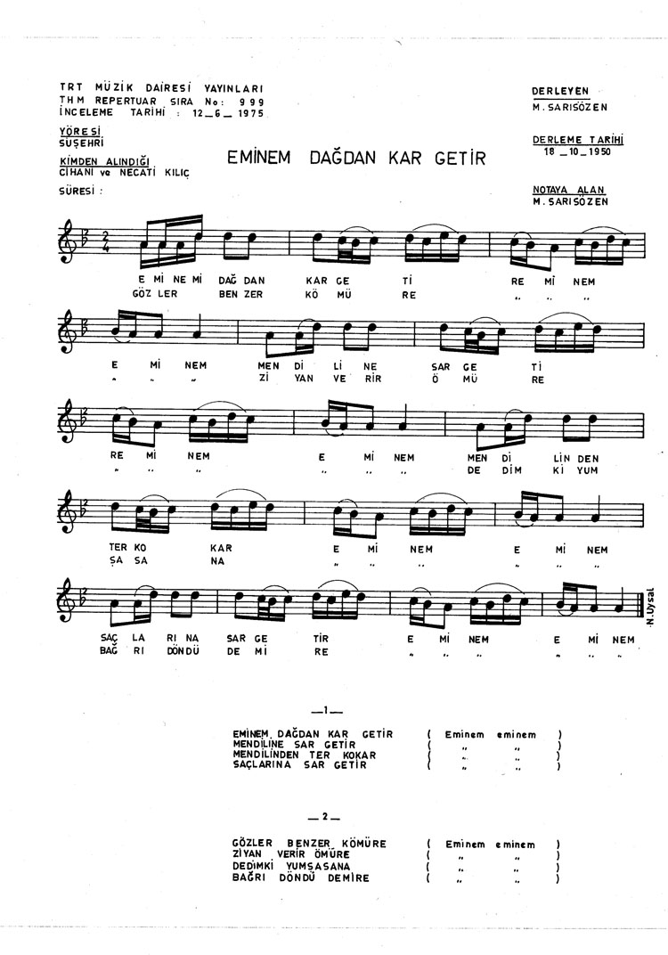 Bu türkünün notasında, sözlerinde veya örnek icrasında bir eksiklik yahut yanlışlık tespit ederseniz, e-mail ile veya WhatsApp hattından bildirim yaparak katkıda bulunabilirsiniz.