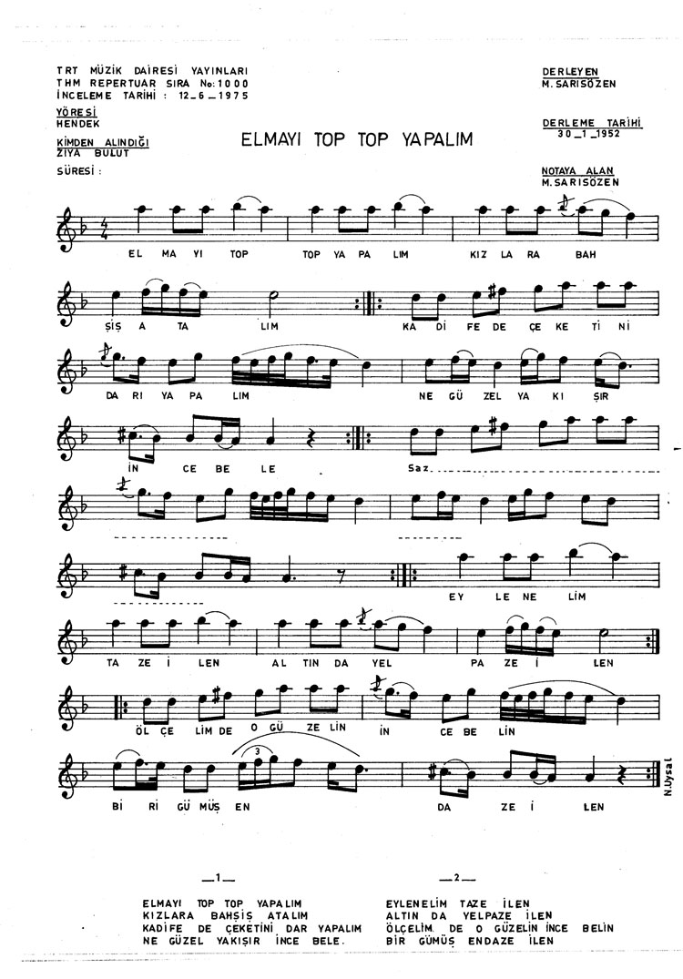 Bu türkünün notasında, sözlerinde veya örnek icrasında bir eksiklik yahut yanlışlık tespit ederseniz, e-mail ile veya WhatsApp hattından bildirim yaparak katkıda bulunabilirsiniz.