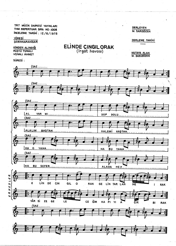 Bu türkünün notasında, sözlerinde veya örnek icrasında bir eksiklik yahut yanlışlık tespit ederseniz, e-mail ile veya WhatsApp hattından bildirim yaparak katkıda bulunabilirsiniz.