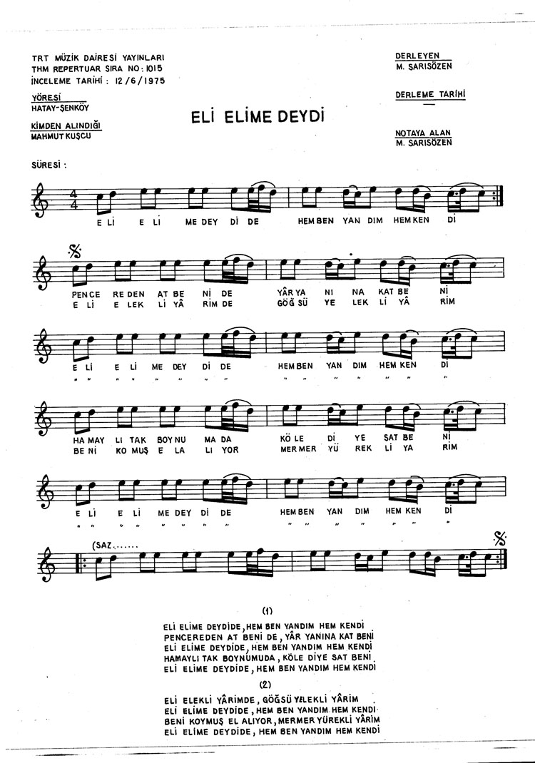 Bu türkünün notasında, sözlerinde veya örnek icrasında bir eksiklik yahut yanlışlık tespit ederseniz, e-mail ile veya WhatsApp hattından bildirim yaparak katkıda bulunabilirsiniz.