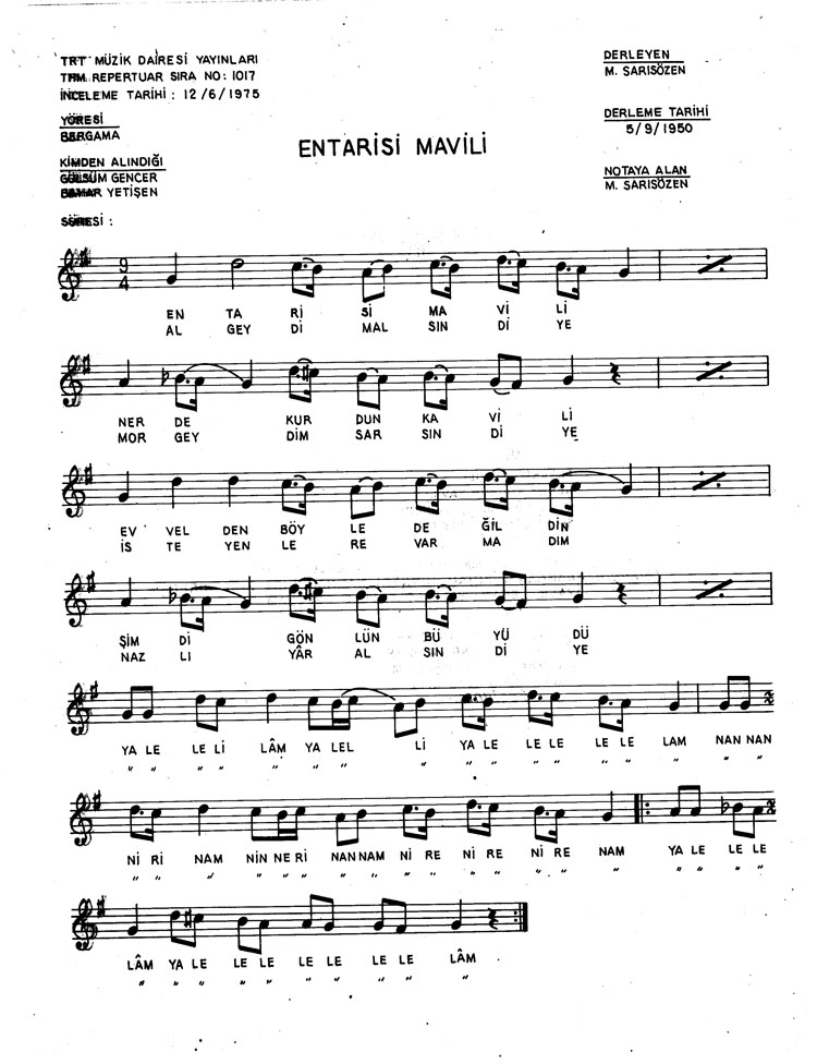 Bu türkünün notasında, sözlerinde veya örnek icrasında bir eksiklik yahut yanlışlık tespit ederseniz, e-mail ile veya WhatsApp hattından bildirim yaparak katkıda bulunabilirsiniz.
