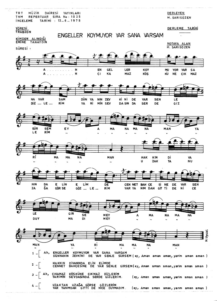 Engeller koymuyor yar sana varsam (Rep.No: 1025)