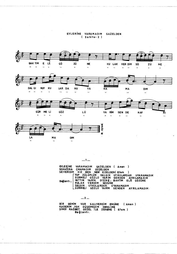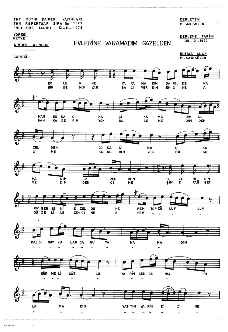 Evlerine varamadım gazelden (Rep.No: 1027)
