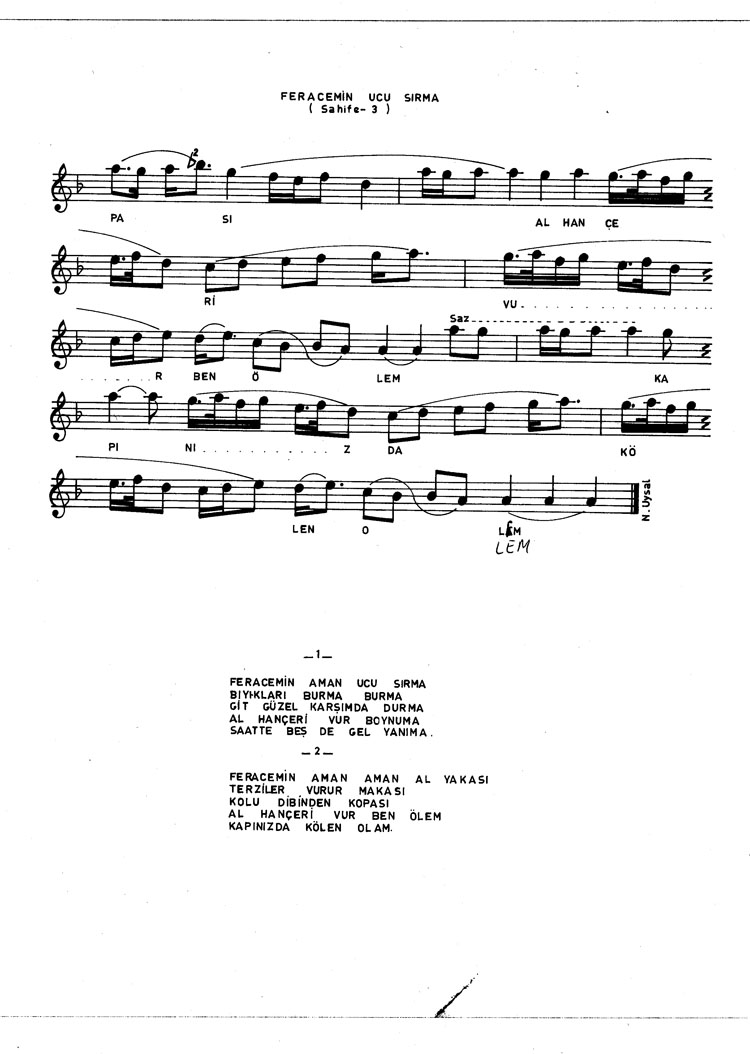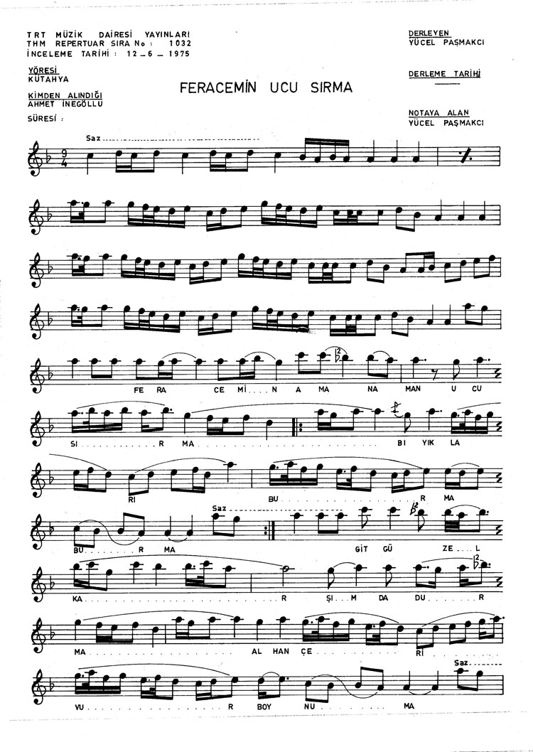 Bu türkünün notasında, sözlerinde veya örnek icrasında bir eksiklik yahut yanlışlık tespit ederseniz, e-mail ile veya WhatsApp hattından bildirim yaparak katkıda bulunabilirsiniz.