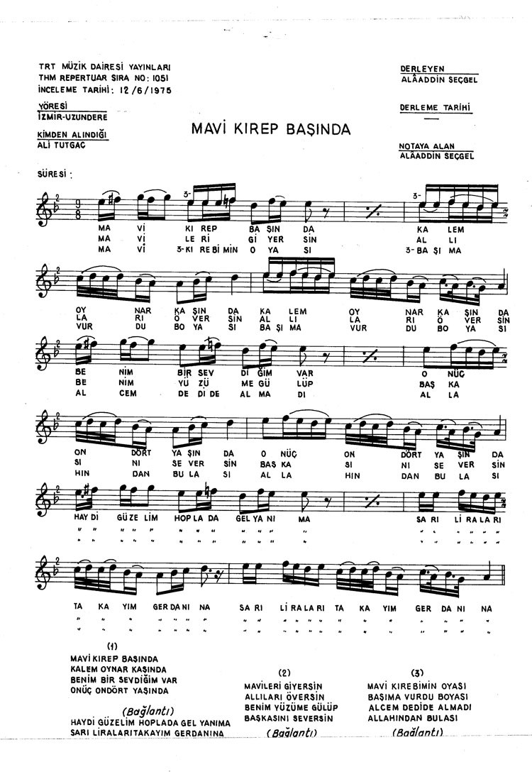Bu türkünün notasında, sözlerinde veya örnek icrasında bir eksiklik yahut yanlışlık tespit ederseniz, e-mail ile veya WhatsApp hattından bildirim yaparak katkıda bulunabilirsiniz.