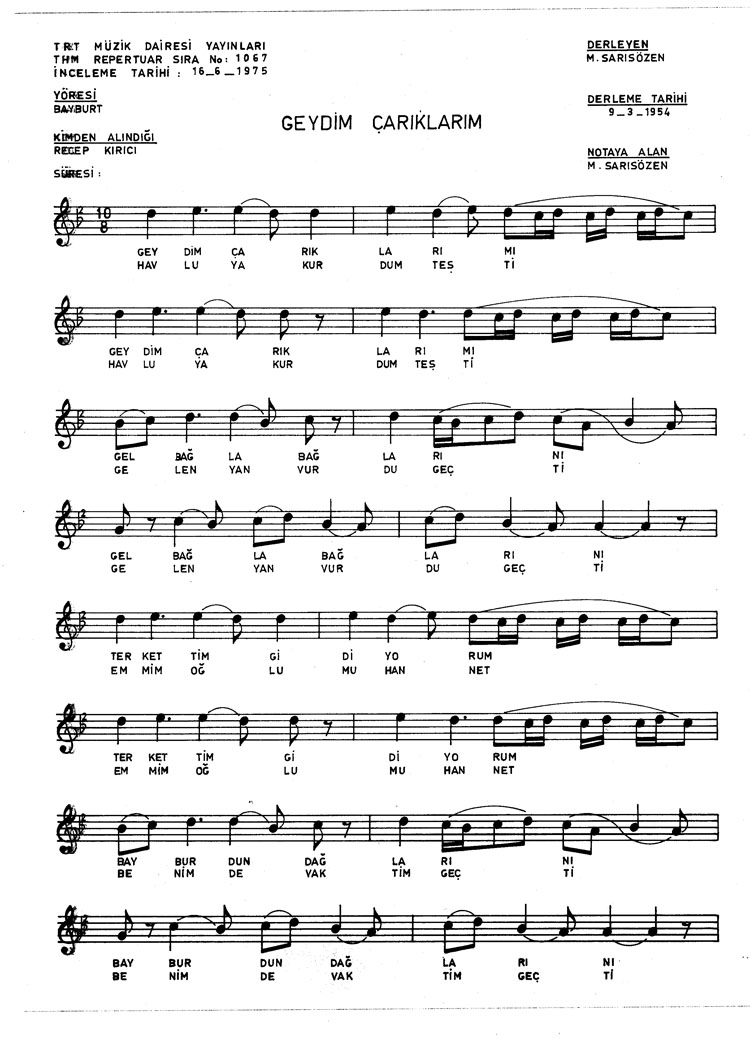 Bu türkünün notasında, sözlerinde veya örnek icrasında bir eksiklik yahut yanlışlık tespit ederseniz, e-mail ile veya WhatsApp hattından bildirim yaparak katkıda bulunabilirsiniz.