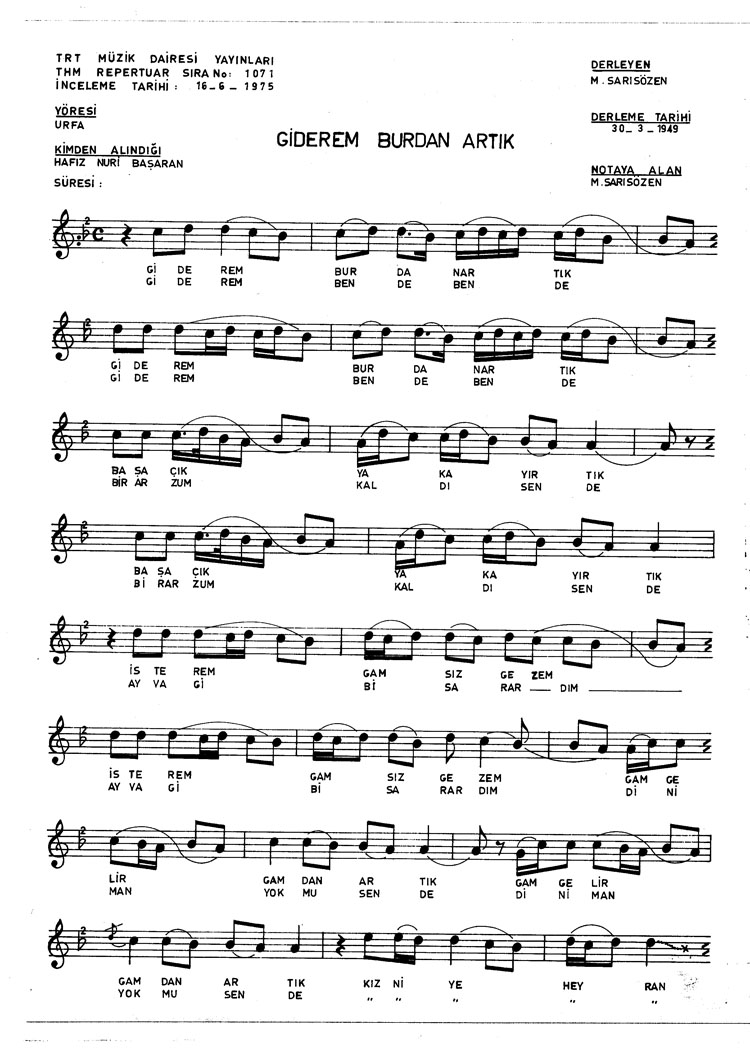 Bu türkünün notasında, sözlerinde veya örnek icrasında bir eksiklik yahut yanlışlık tespit ederseniz, e-mail ile veya WhatsApp hattından bildirim yaparak katkıda bulunabilirsiniz.