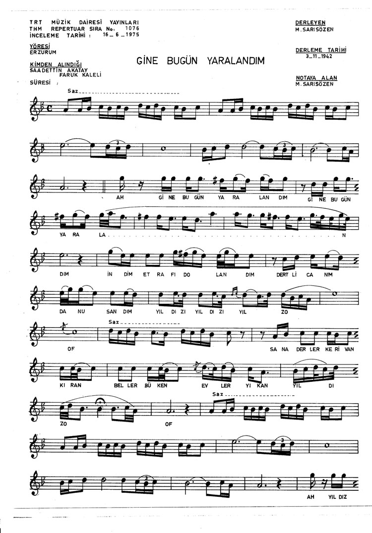 Bu türkünün notasında, sözlerinde veya örnek icrasında bir eksiklik yahut yanlışlık tespit ederseniz, e-mail ile veya WhatsApp hattından bildirim yaparak katkıda bulunabilirsiniz.