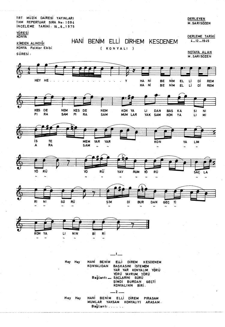 Hani benim elli dirhem kesdenem (Rep.No: 1094)