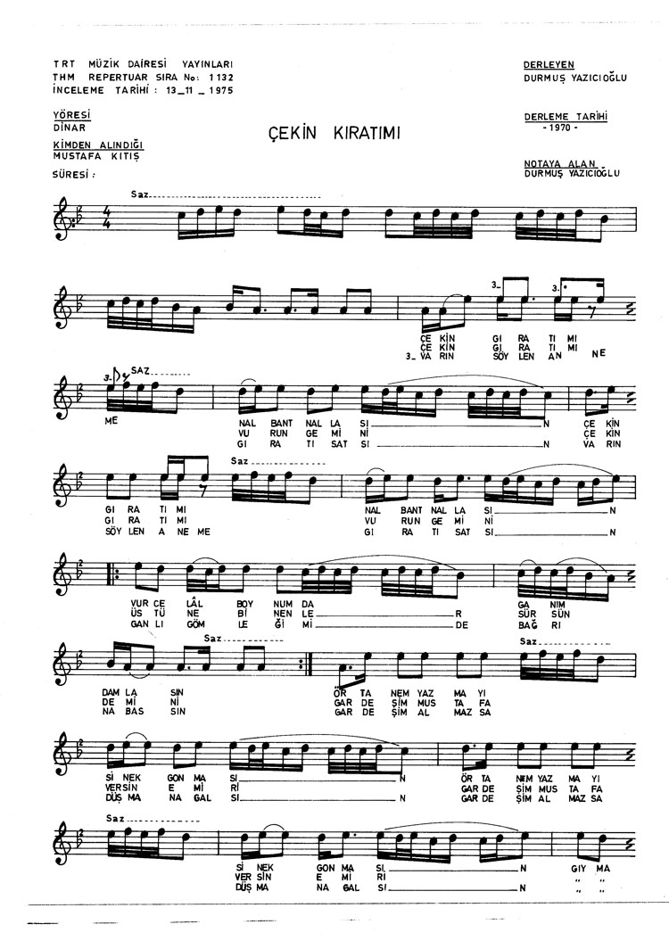 Bu türkünün notasında, sözlerinde veya örnek icrasında bir eksiklik yahut yanlışlık tespit ederseniz, e-mail ile veya WhatsApp hattından bildirim yaparak katkıda bulunabilirsiniz.