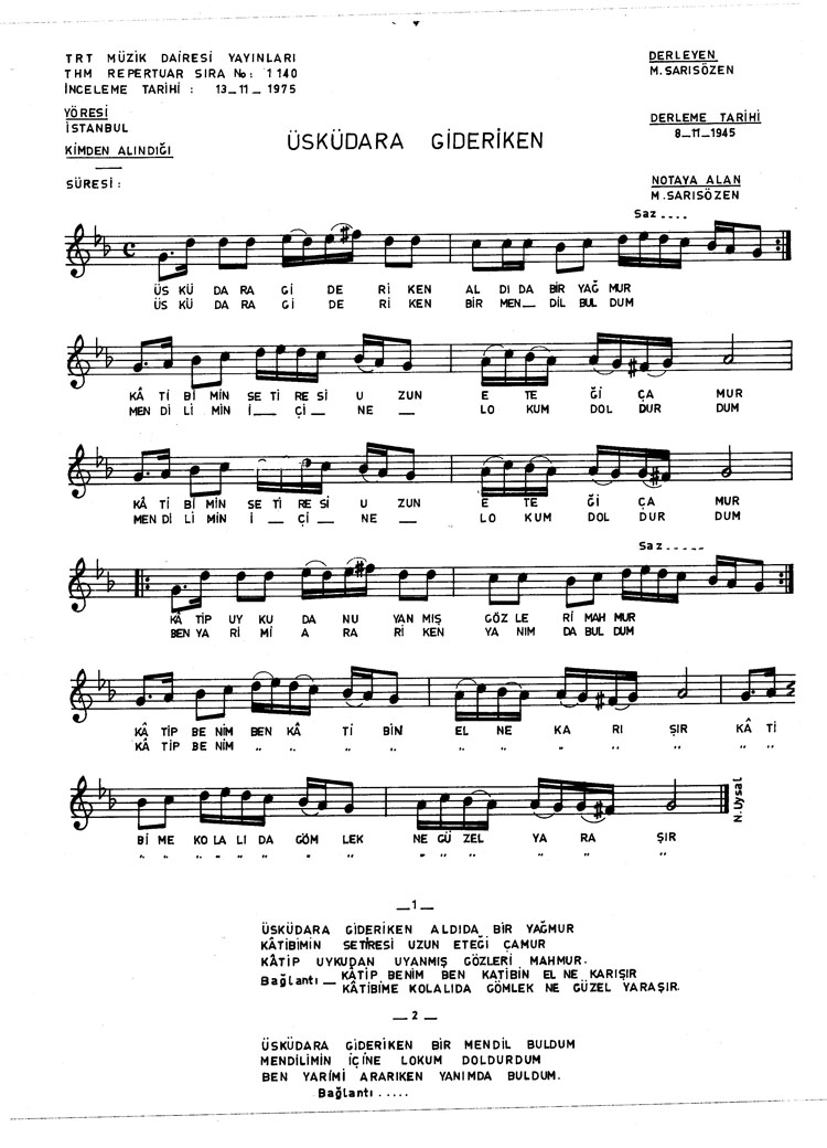 Üsküdar´a gider iken aldı da bir yağmur (Rep.No: 1140)