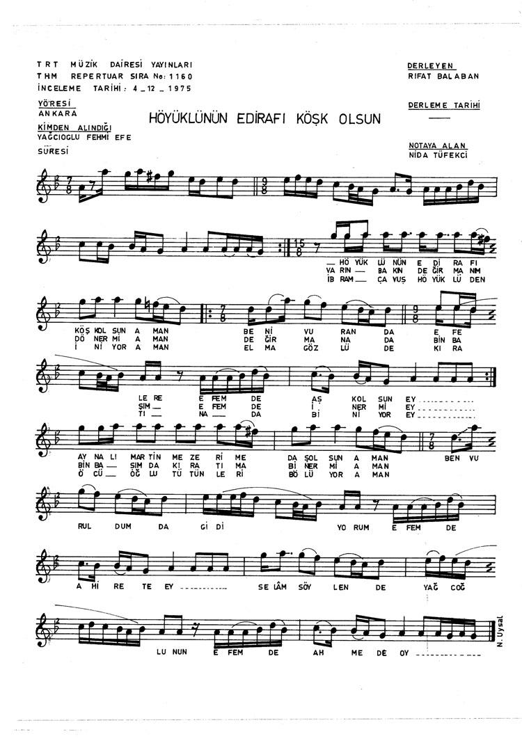 Bu türkünün notasında, sözlerinde veya örnek icrasında bir eksiklik yahut yanlışlık tespit ederseniz, e-mail ile veya WhatsApp hattından bildirim yaparak katkıda bulunabilirsiniz.