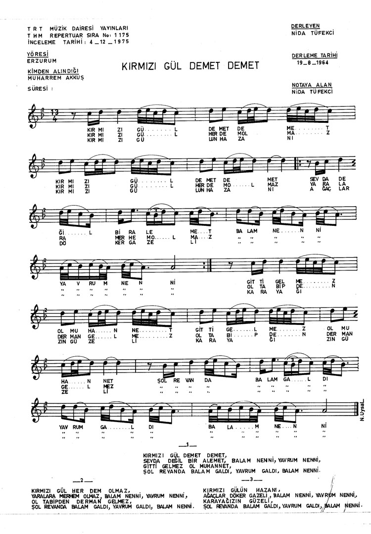 Bu türkünün notasında, sözlerinde veya örnek icrasında bir eksiklik yahut yanlışlık tespit ederseniz, e-mail ile veya WhatsApp hattından bildirim yaparak katkıda bulunabilirsiniz.