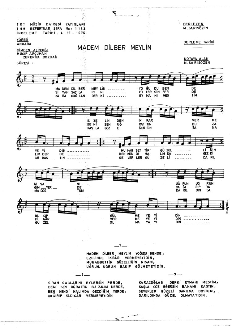 Madem dilber meylin yoğidi bende (Rep.No: 1183)