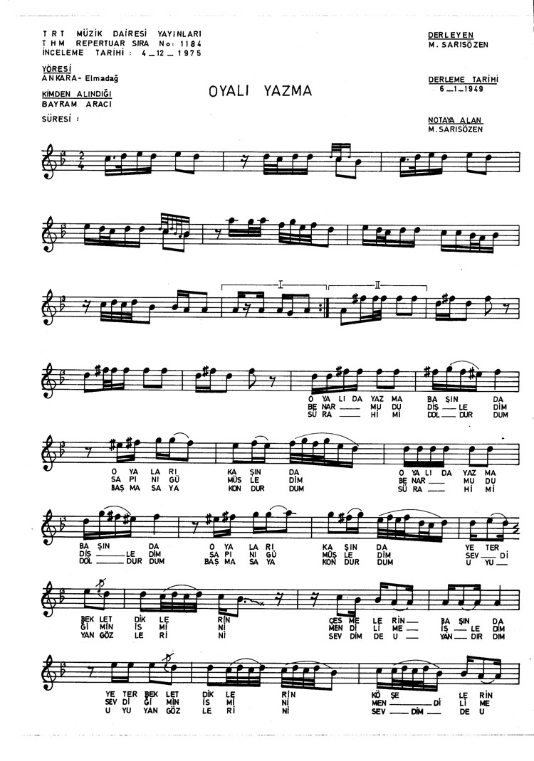 Bu türkünün notasında, sözlerinde veya örnek icrasında bir eksiklik yahut yanlışlık tespit ederseniz, e-mail ile veya WhatsApp hattından bildirim yaparak katkıda bulunabilirsiniz.