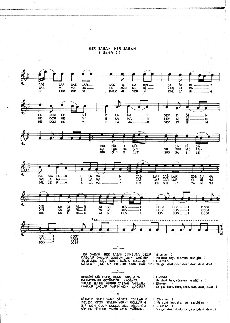 Bu türkünün notasında, sözlerinde veya örnek icrasında bir eksiklik yahut yanlışlık tespit ederseniz, e-mail ile veya WhatsApp hattından bildirim yaparak katkıda bulunabilirsiniz.